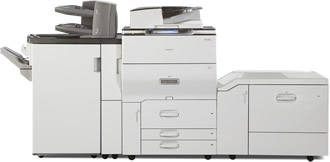 Standard paper handling includes a 530-sheet tray and a 300-sheet multi-purpose tray. Users can add additional trays as options – such as a second 530-sheet tray, two additional 530-sheet trays, or a second tray and a high-capacity feeder that supports up to 1,590 sheets. Maximum paper input is 2,950 sheets. Output is a maximum of 610 sheets (face-down).